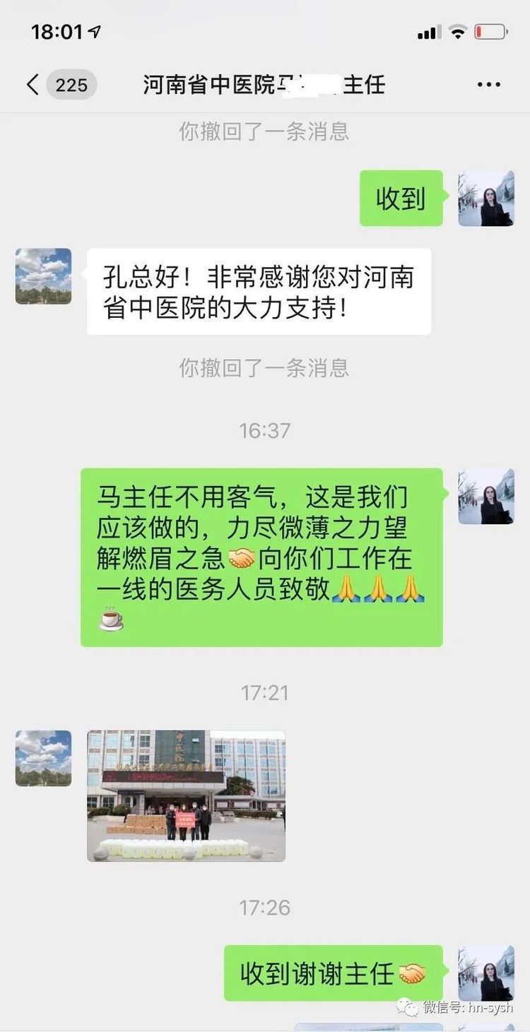 3月2日剛回到國內,還在家中休息倒時差的孔夢雪董事長,當了解到河南省中醫院疫情防控消毒物資緊缺的消息后,不顧疲勞立即***時間聯系安排組織對接工作。在河南省潤滑油行業商會鄭會長、秘書組朱紅雨等領導的大力協調下,緊急聯系調運84消毒液1噸,送到河南省中醫院防疫一線。